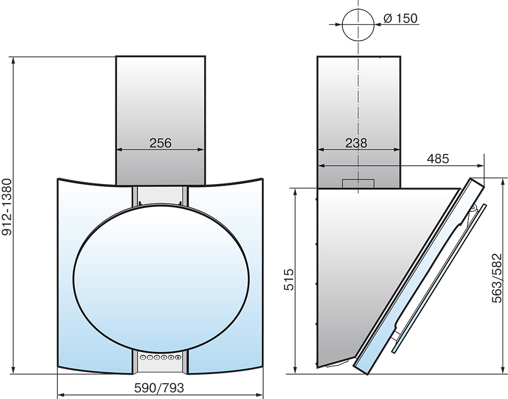 • Ширина вытяжки